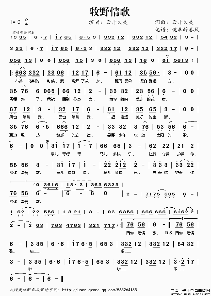作词:云丹久美   作曲:云丹久美   演唱(奏):云丹久美   格式:简谱   来源:桃李醉春风记谱   上传:桃李醉春风   日期:2010-11-10   浏览次数: