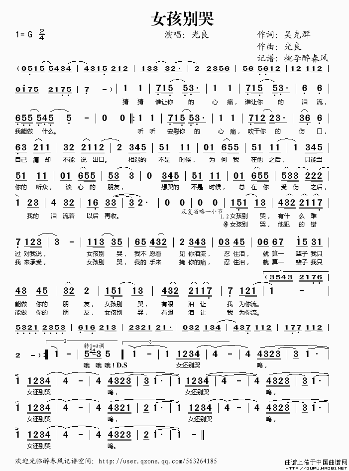 关于《女孩别哭》曲谱的评论