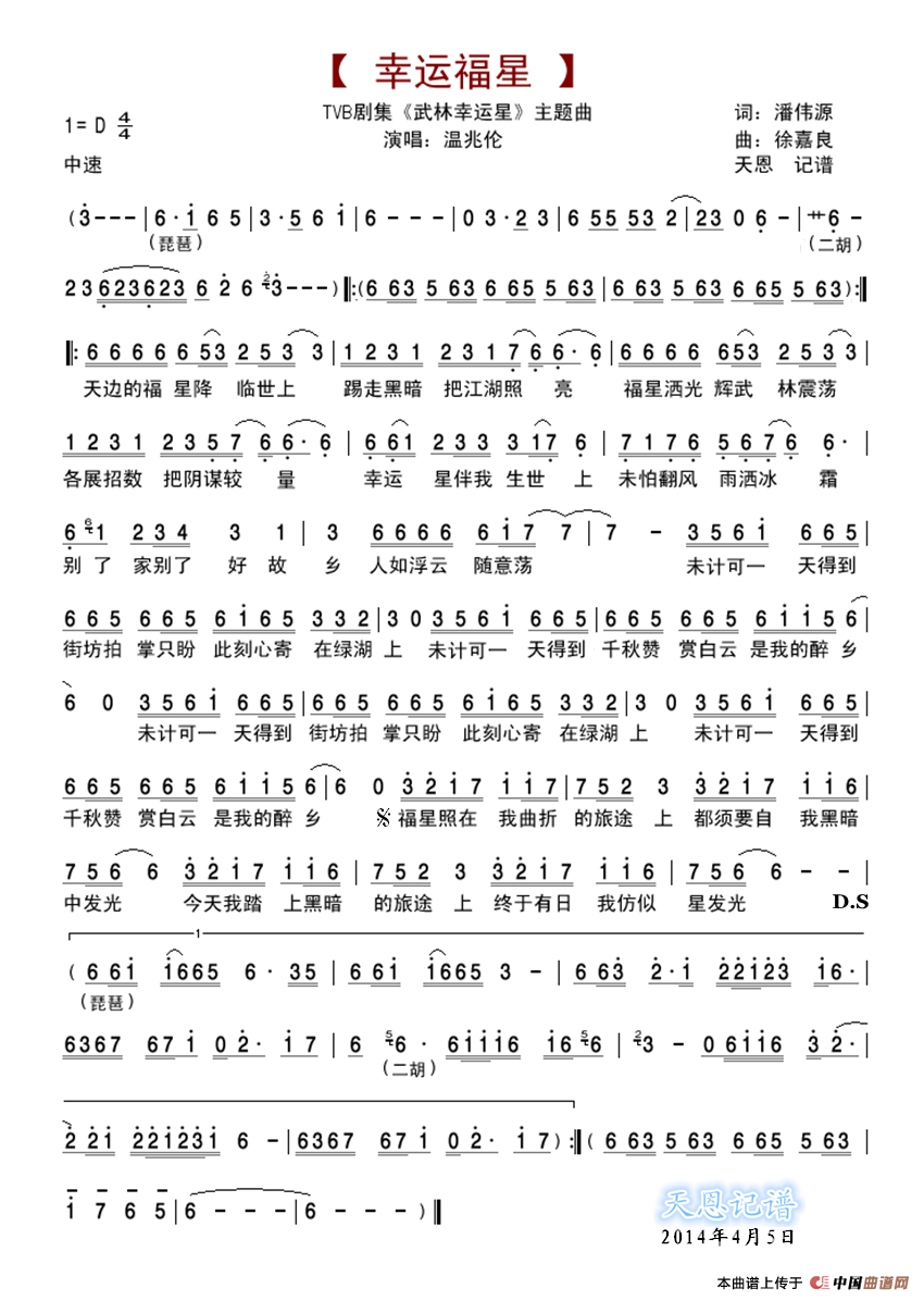 提示:在曲谱图片上单击右键,选择"图片另存为..."即可将曲谱保存到您的电脑中,打印时候可将图片插入到WORD中,调整合适大小打印即可。