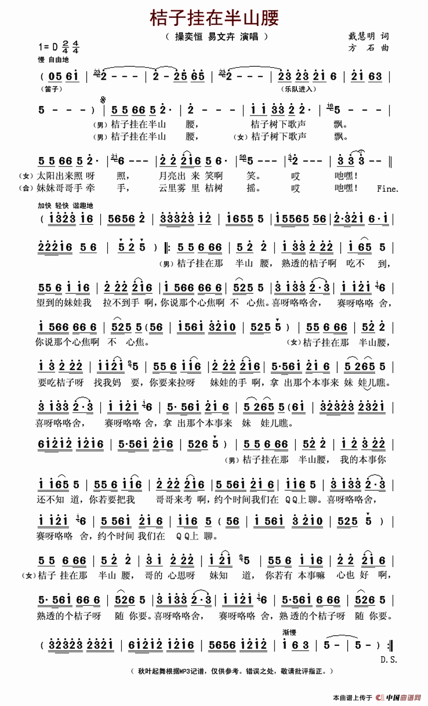 关于《桔子挂在半山腰》曲谱的评论
