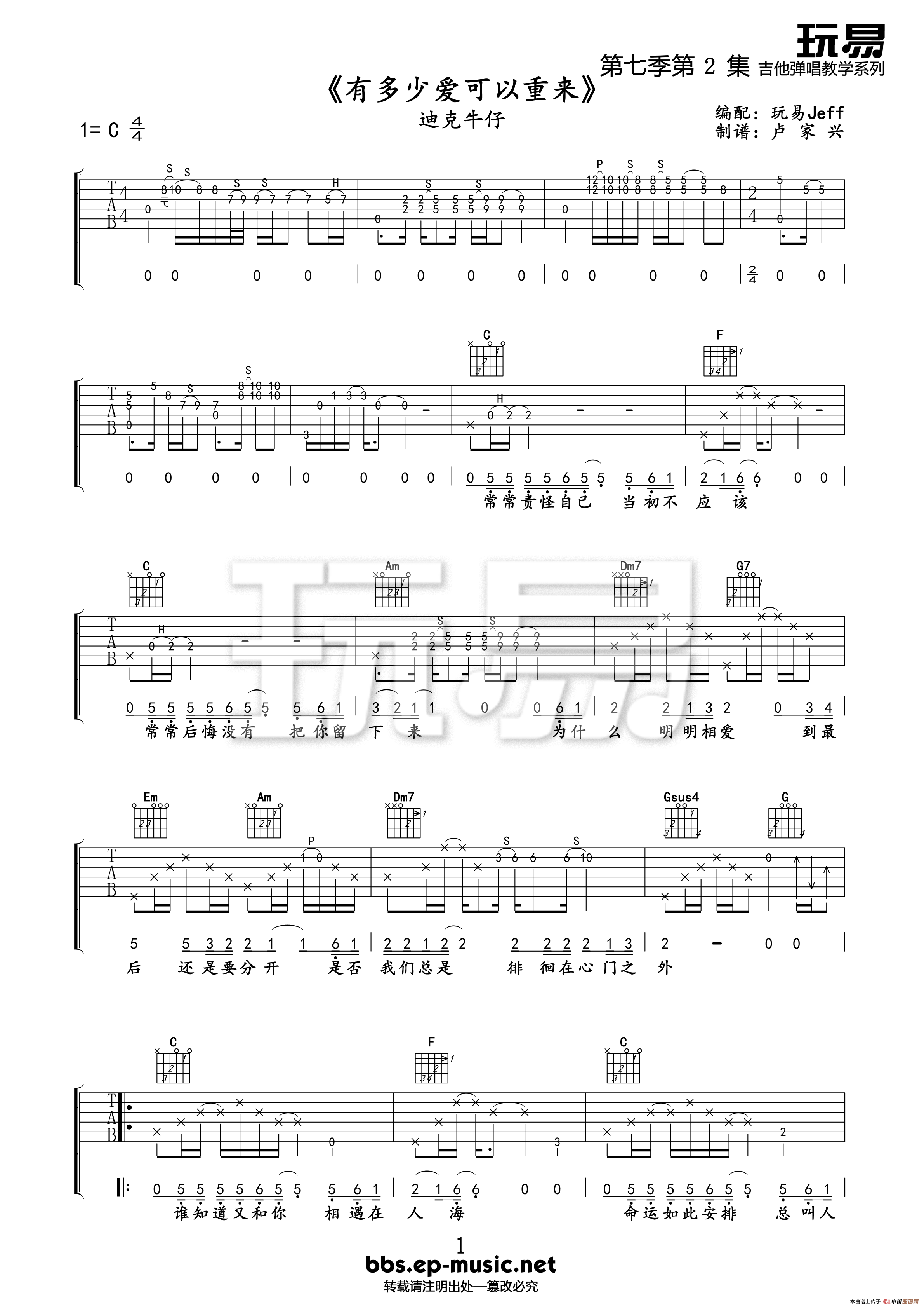有多少爱可以重来(吉他六线谱)