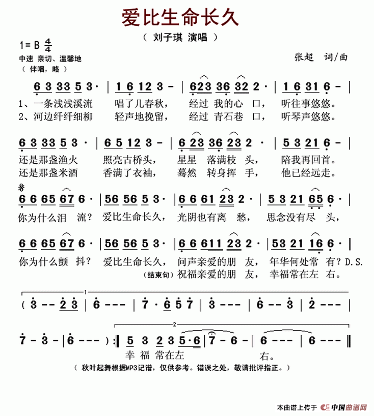 关于《爱比生命长久》曲谱的评论