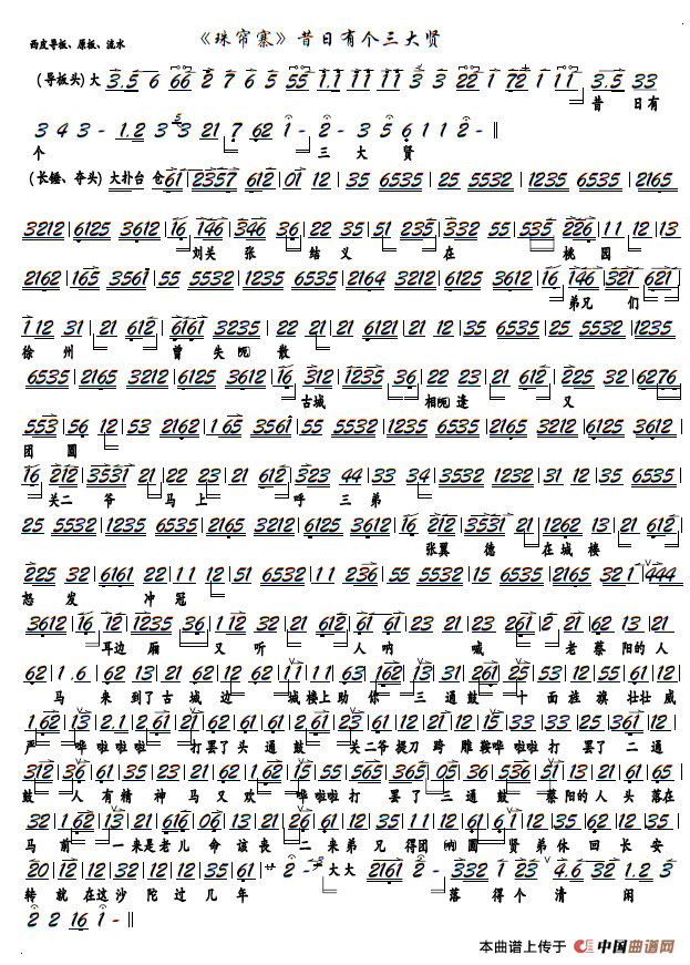 昔日有个三大贤(京剧《珠帘寨》选段,京胡谱)