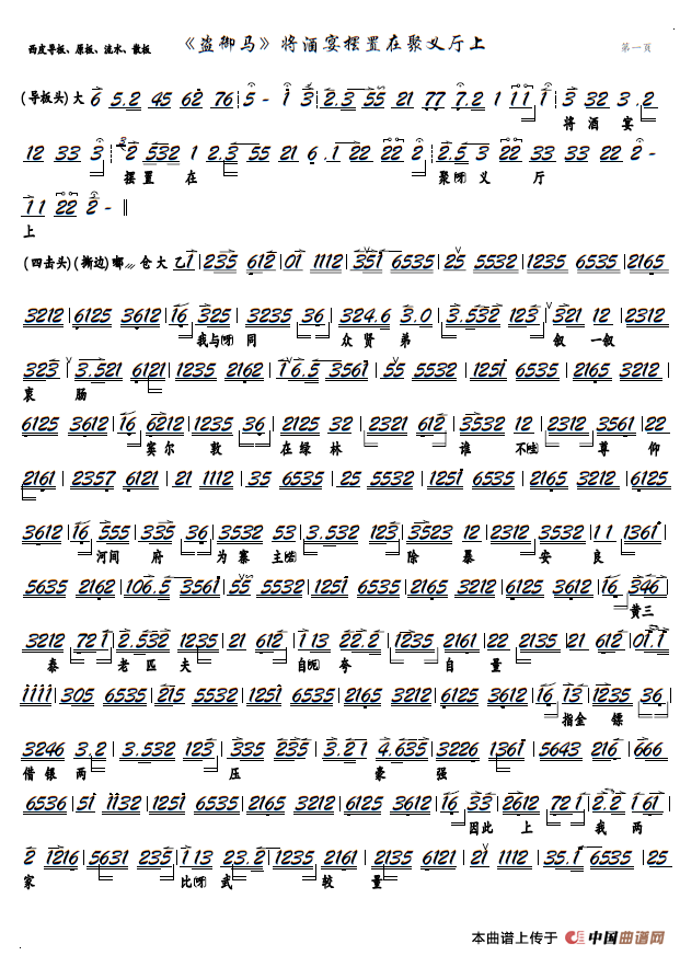 《盗御马》将酒宴摆置在聚义厅上(京剧《盗御马》选段,京胡谱)