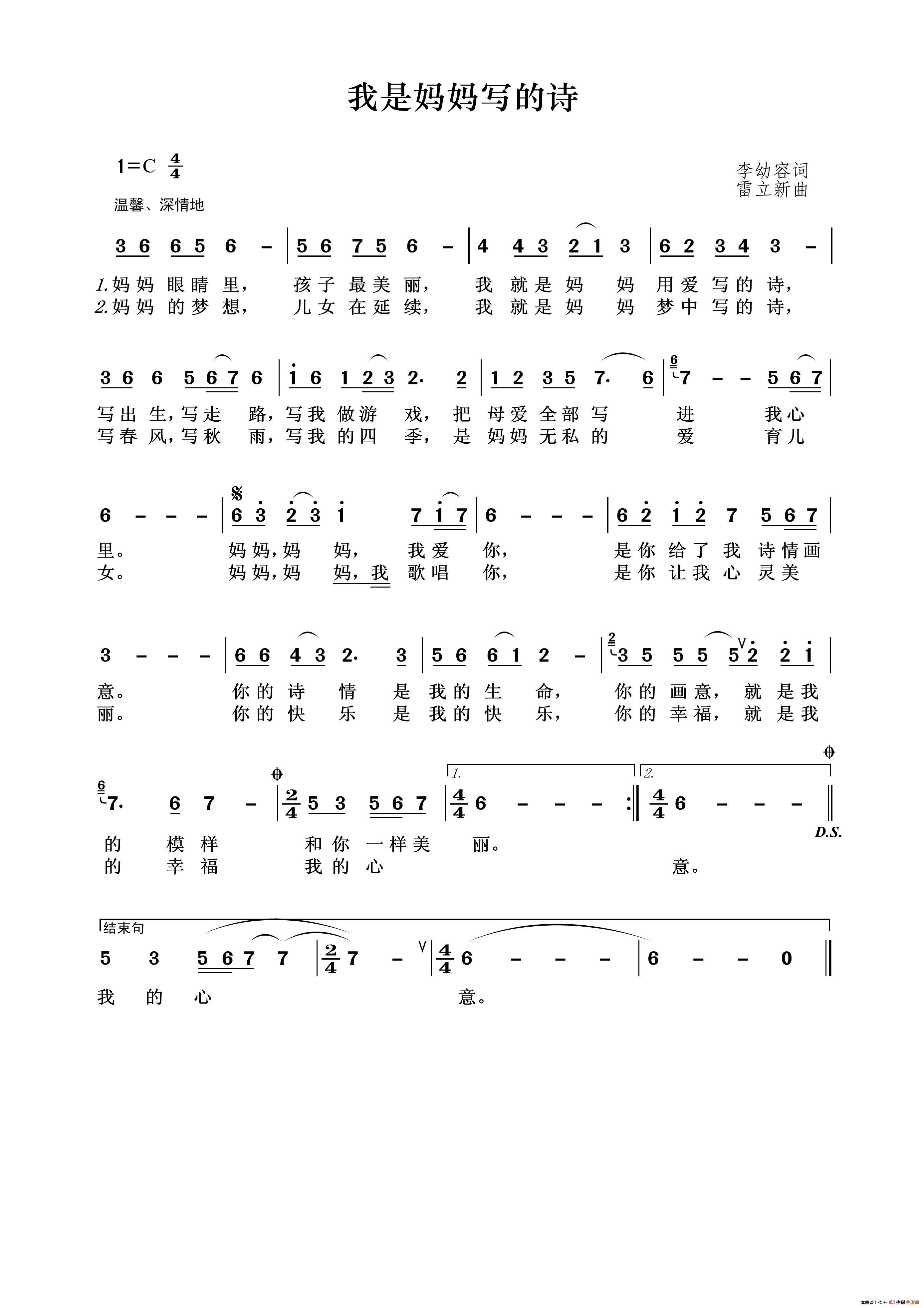关于《我是妈妈写的诗》曲谱的评论
