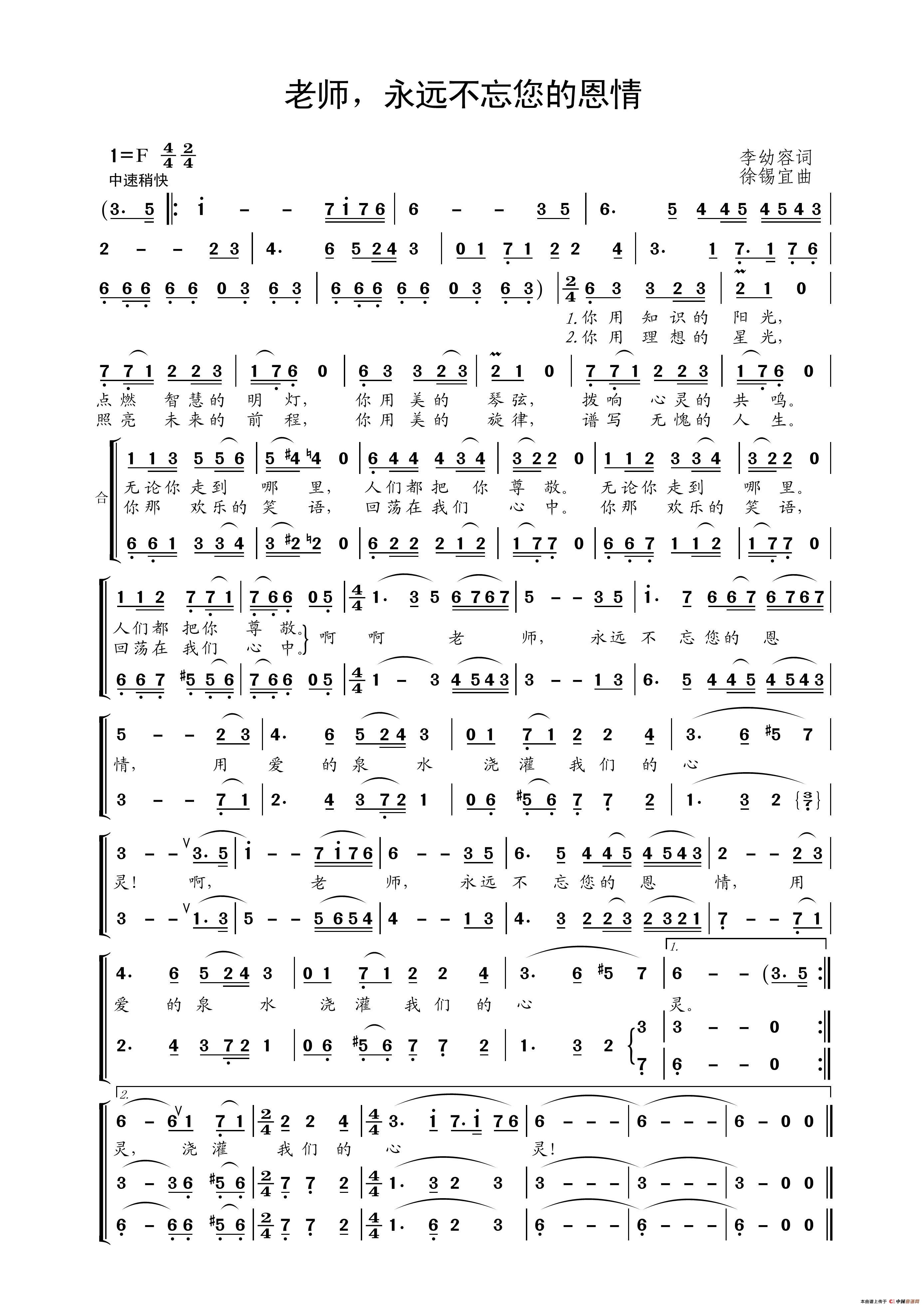 关于《老师,永远不忘您的恩情》曲谱的评论