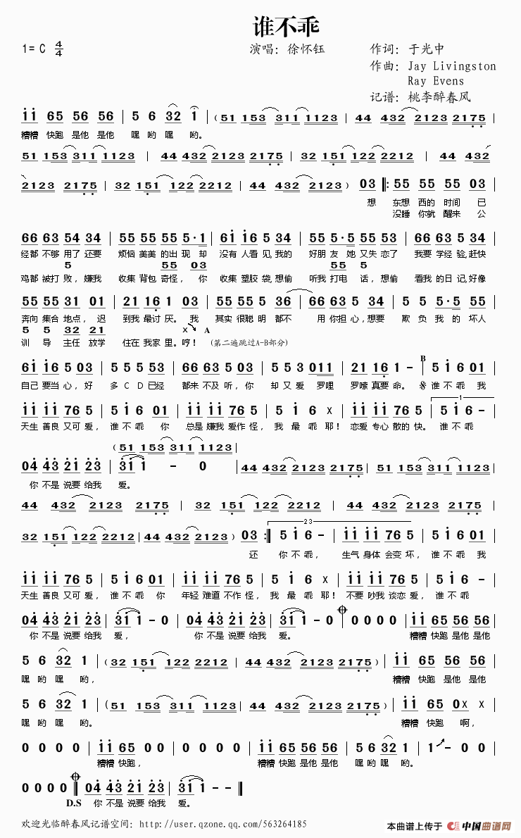 关于《谁不乖》曲谱的评论
