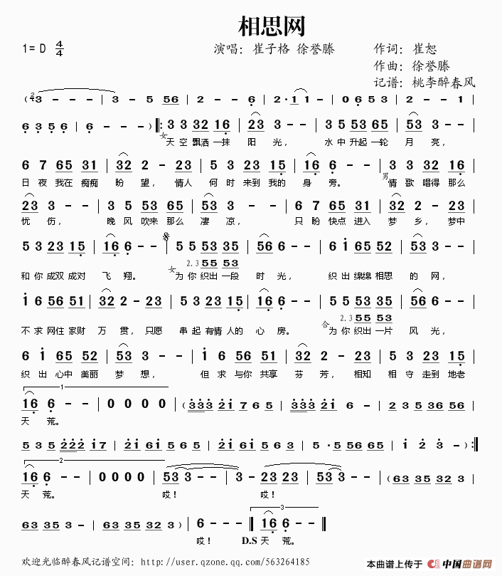 关于《相思网》曲谱的评论