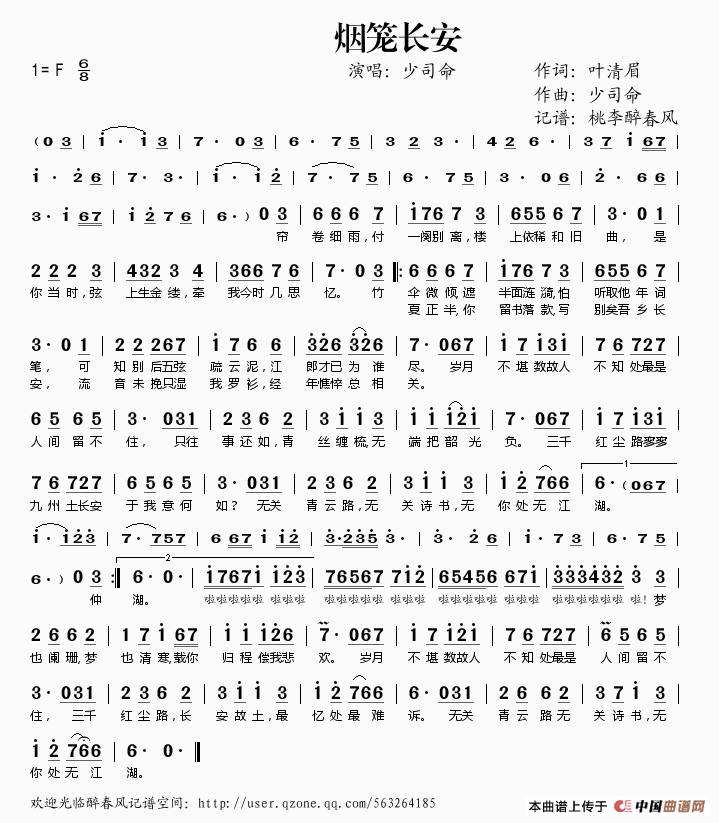 作词:叶清眉   作曲:少司命   演唱(奏):少司命   来源:桃李醉春风记谱   上传:桃李醉春风   日期:2014-06-13   浏览次数:
