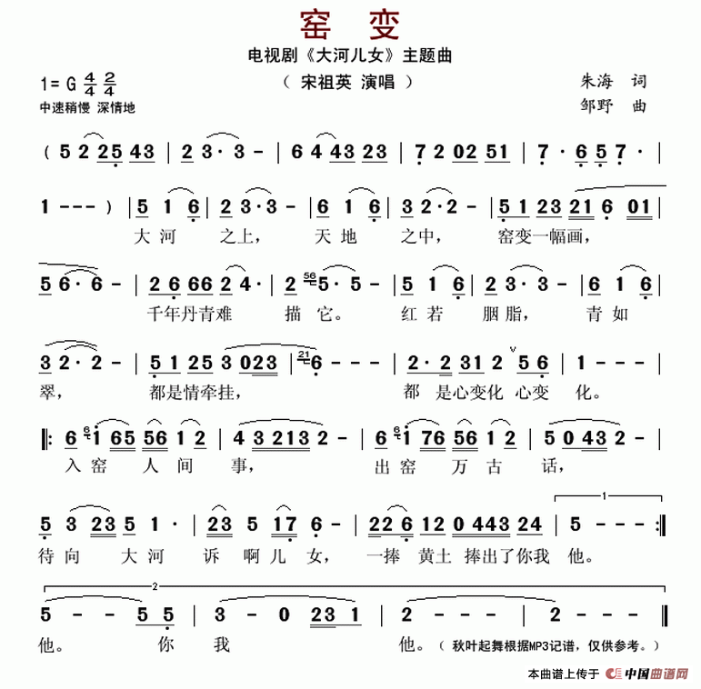 作词:朱海 作曲:邹野 演唱:宋祖英