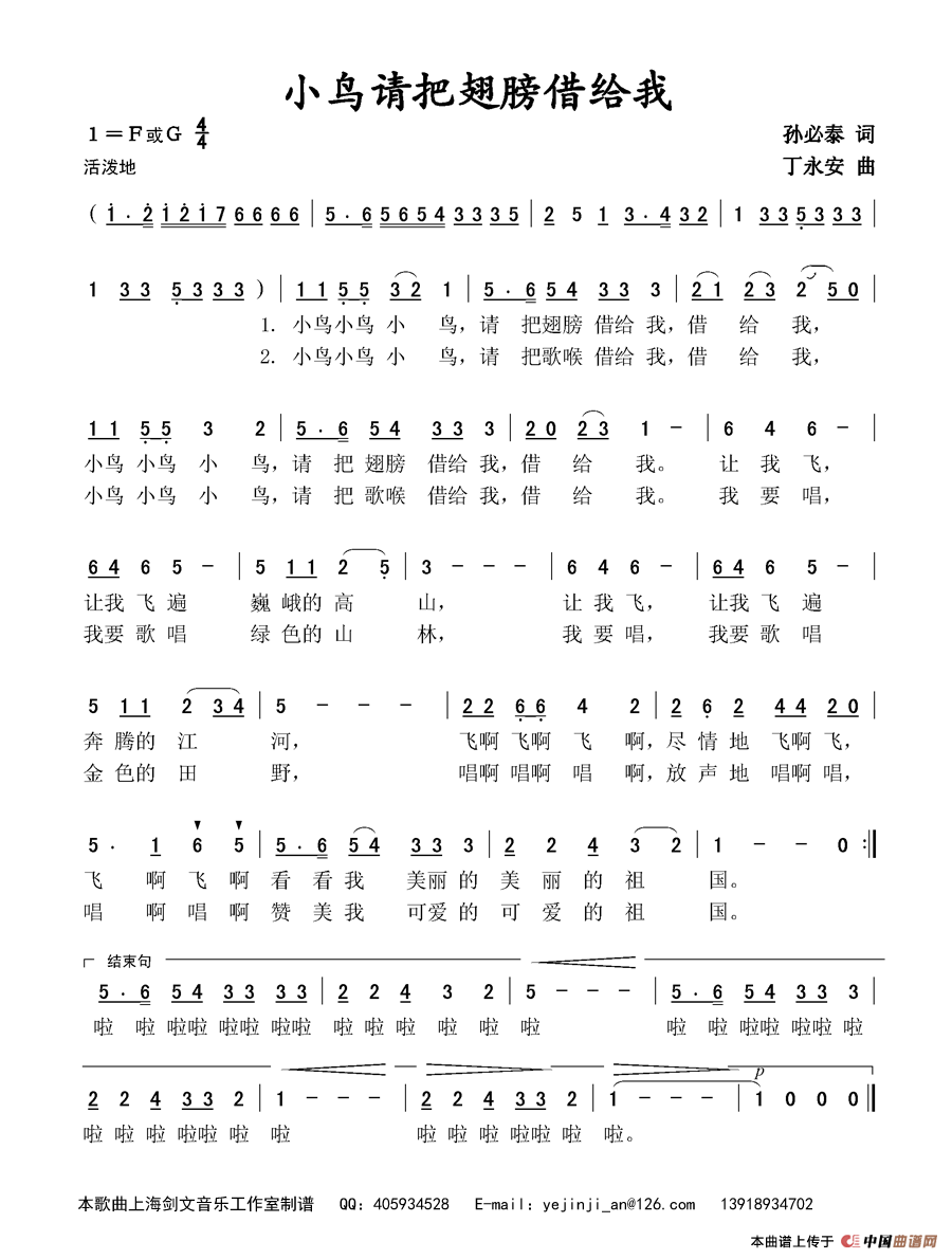 关于《小鸟请把翅膀借给我》曲谱的评论