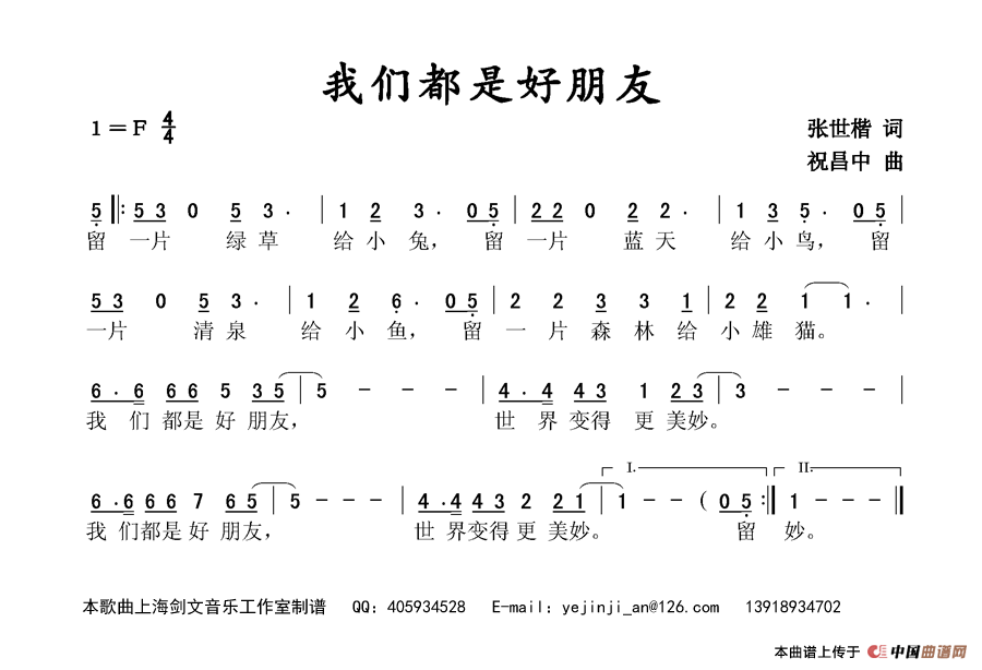 作词:张世楷   作曲:祝昌中   来源:谱友叶金剑上传   上传:叶金剑   日期:2014-06-28   浏览次数: