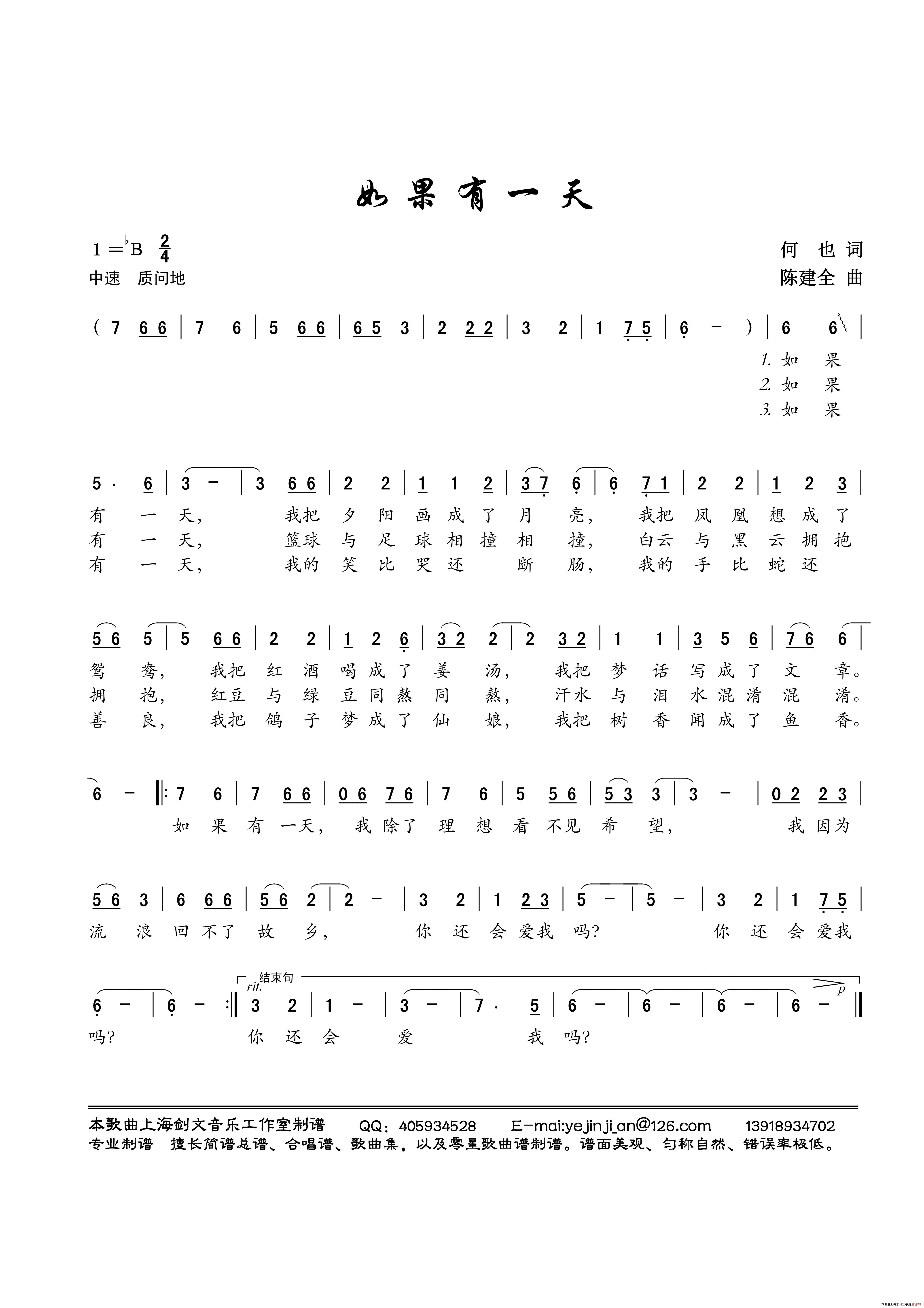 《如果有一天》文本歌词