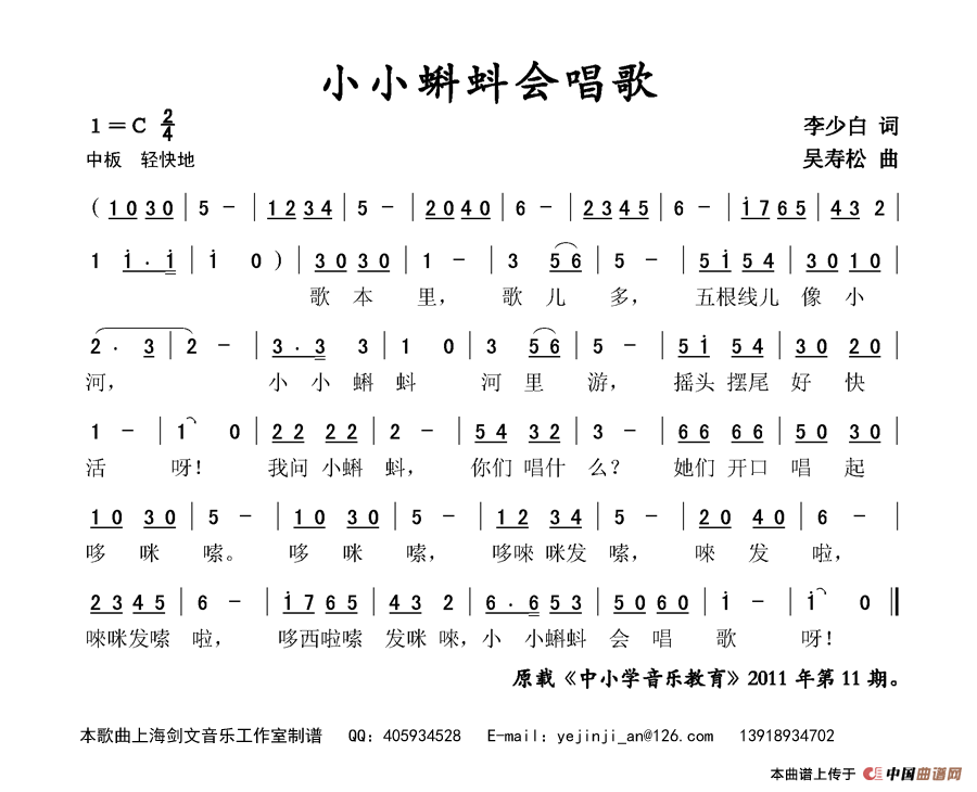小小蝌蚪会唱歌(李少白词 吴寿松曲)