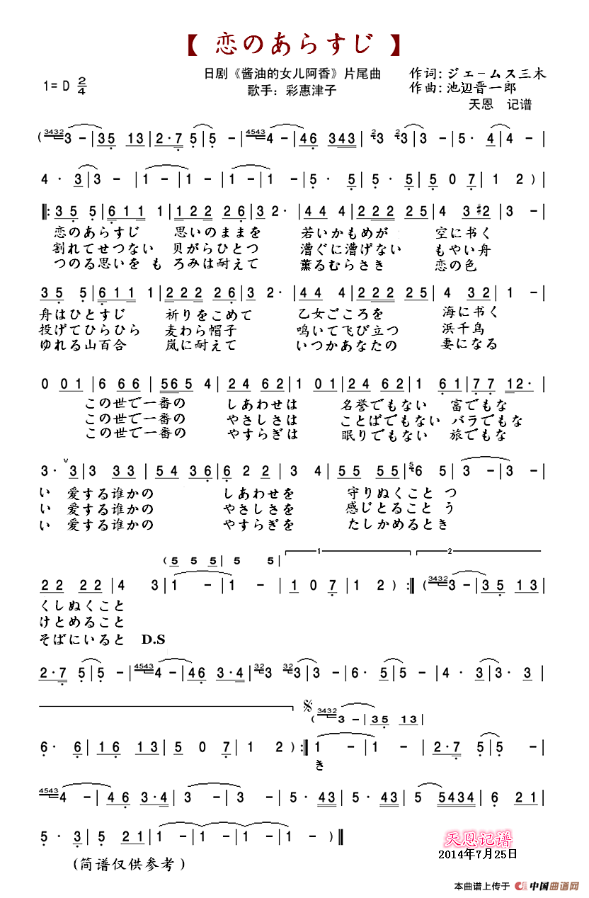 作词:ジェームス三木 作曲:池辺晋一郎 演唱(奏):彩惠津子 来源:谱友天恩上传 上传:天恩