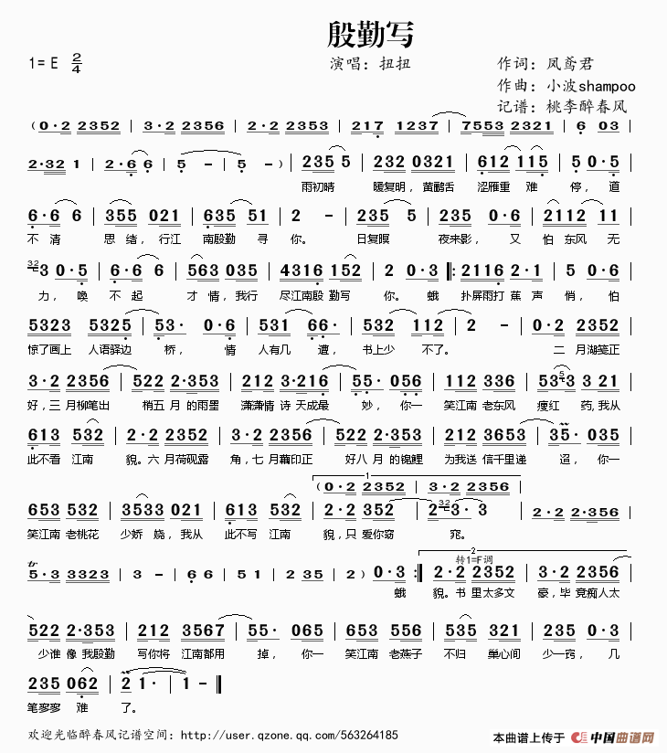 《殷勤写》文本歌词