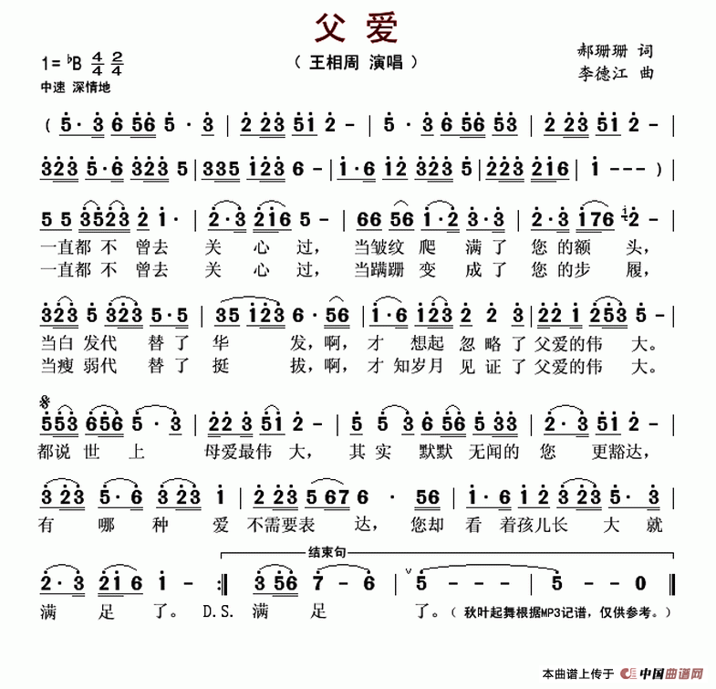 提示:在曲谱图片上单击右键,选择“图片另存为...”即可将曲谱保存到您的电脑中,打印时候可将图片插入到WORD中,调整合适大小打印即可。