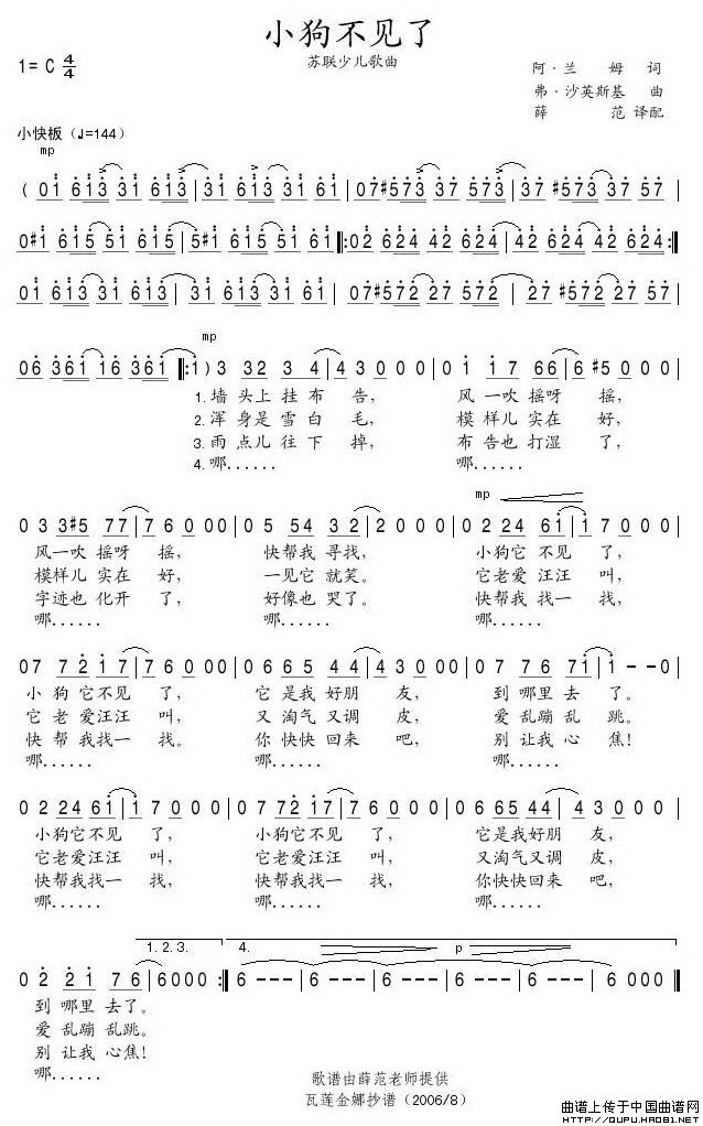 格式:简谱 来源:瓦莲金娜 制谱上传 上传:瓦莲金娜