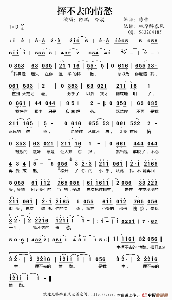 《挥不去的情愁》文本歌词