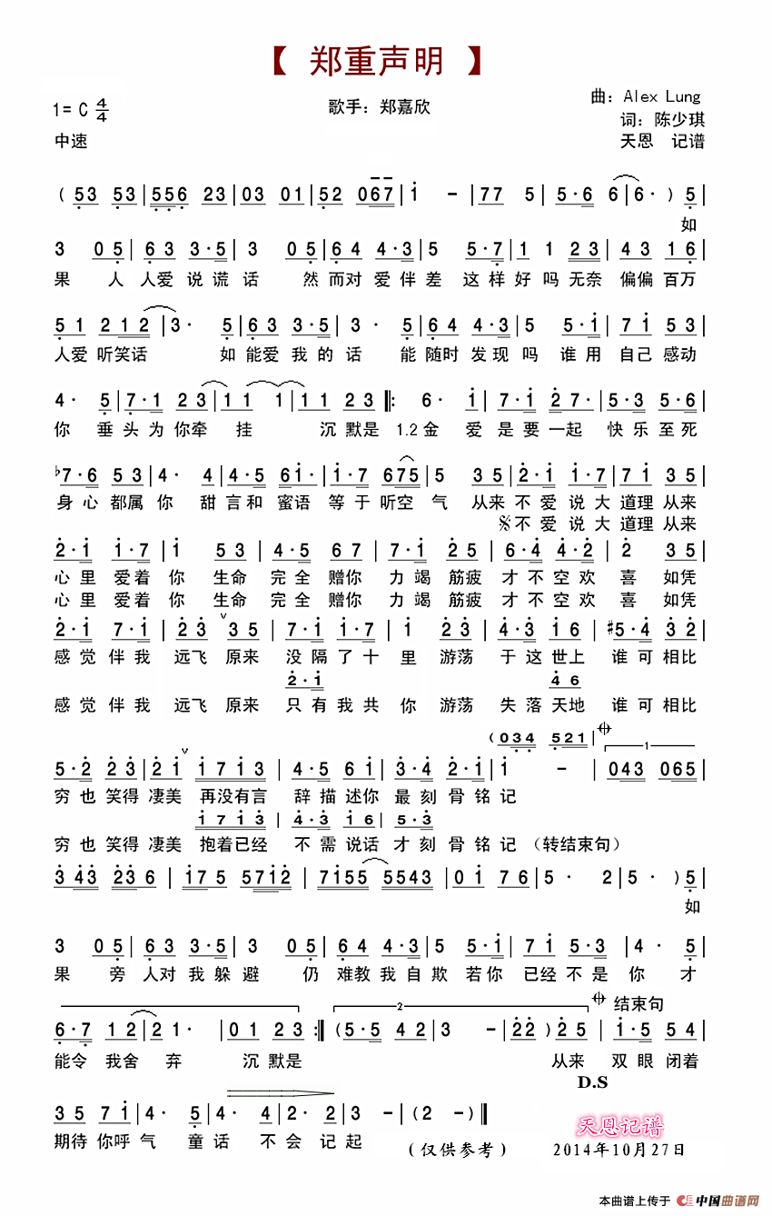 提示:在曲谱图片上单击右键,选择"图片另存为..."即可将曲谱保存到您的电脑中,打印时候可将图片插入到WORD中,调整合适大小打印即可。