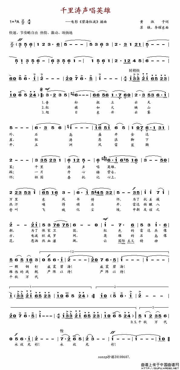 关于《千里涛声唱英雄》曲谱的评论
