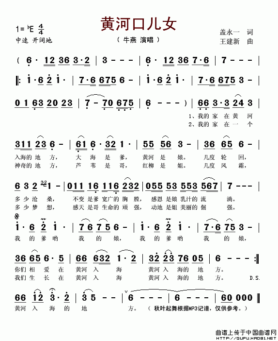 关于《黄河口儿女》曲谱的评论