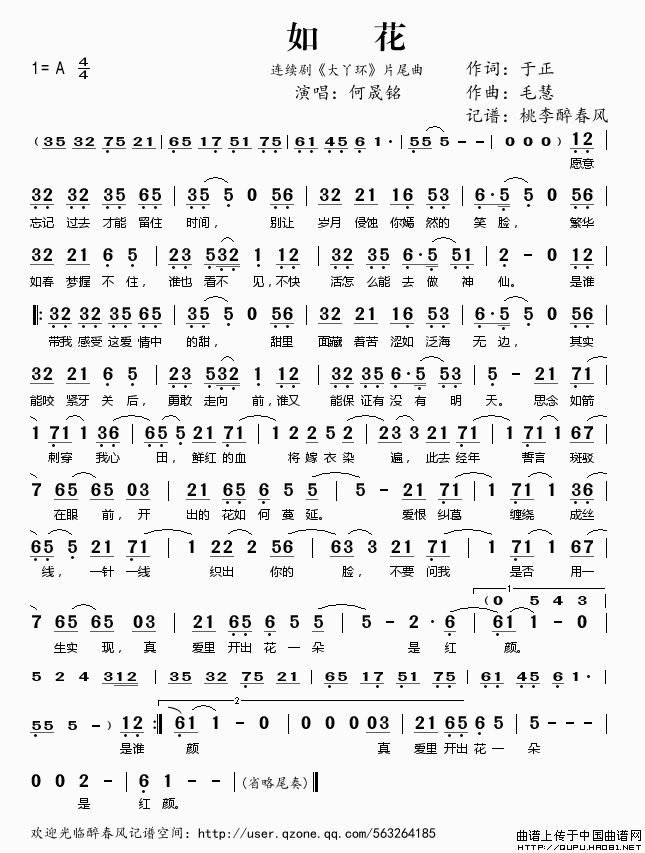 作词:于正   作曲:毛慧   演唱(奏):何晟铭   格式:简谱   来源:桃李醉春风记谱   上传:桃李醉春风   日期:2010-07-08   浏览次数: