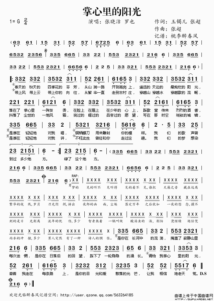 关于《掌心里的阳光》曲谱的评论