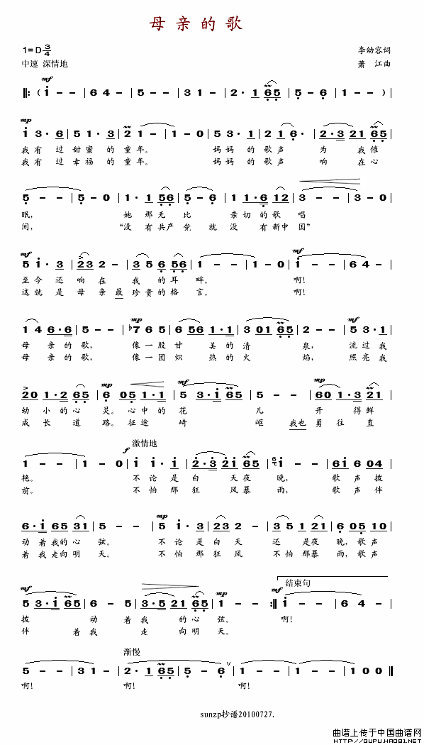 母亲的歌(李幼容词 萧江曲)