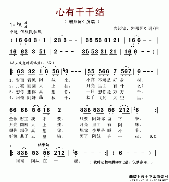 心有千千结(岩迈宰词 岩那阿K 曲)