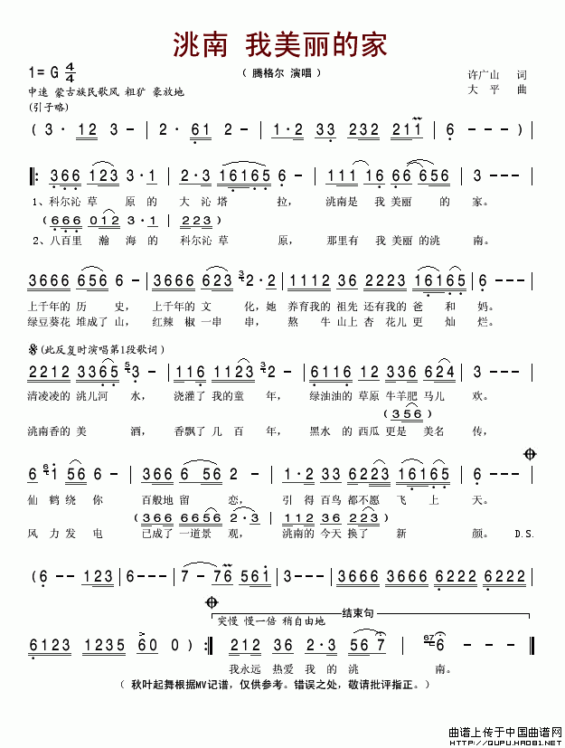 关于《洮南 我美丽的家》曲谱的评论