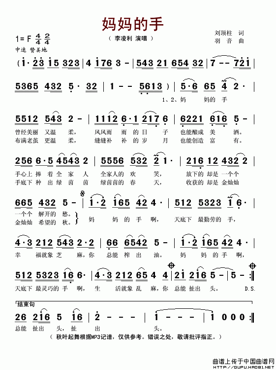 妈妈的手(刘顶柱词 羽音曲)(1)_原文件名:妈妈的手1.gif