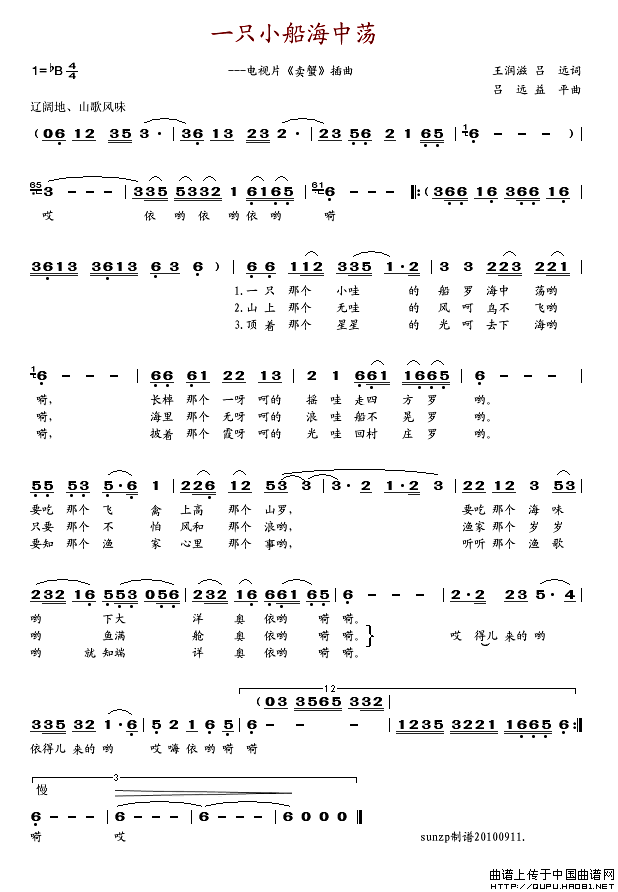 关于《一只小船海中荡》曲谱的评论