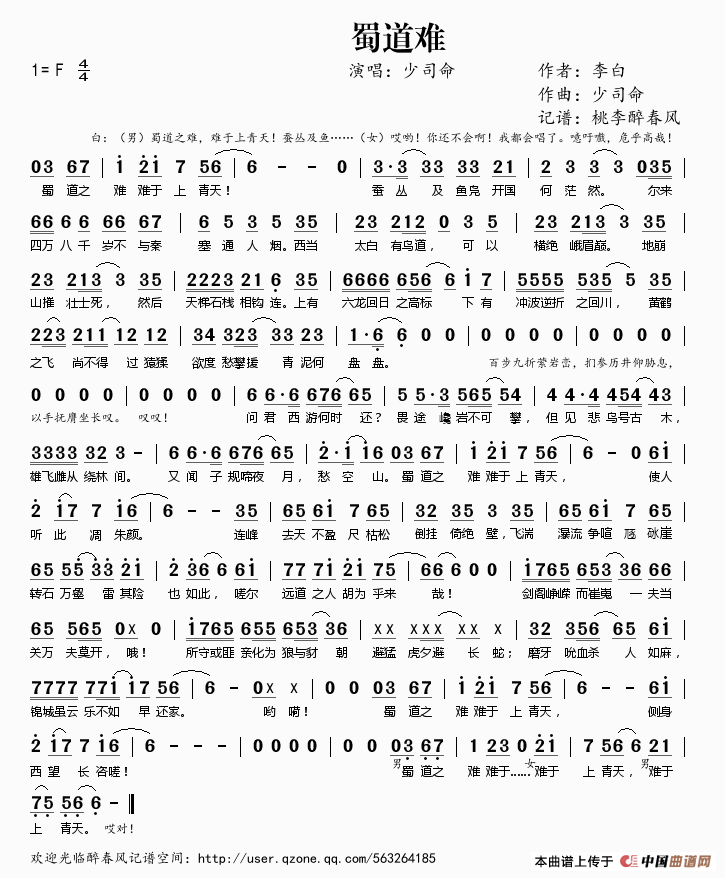 歌词名称:蜀道难