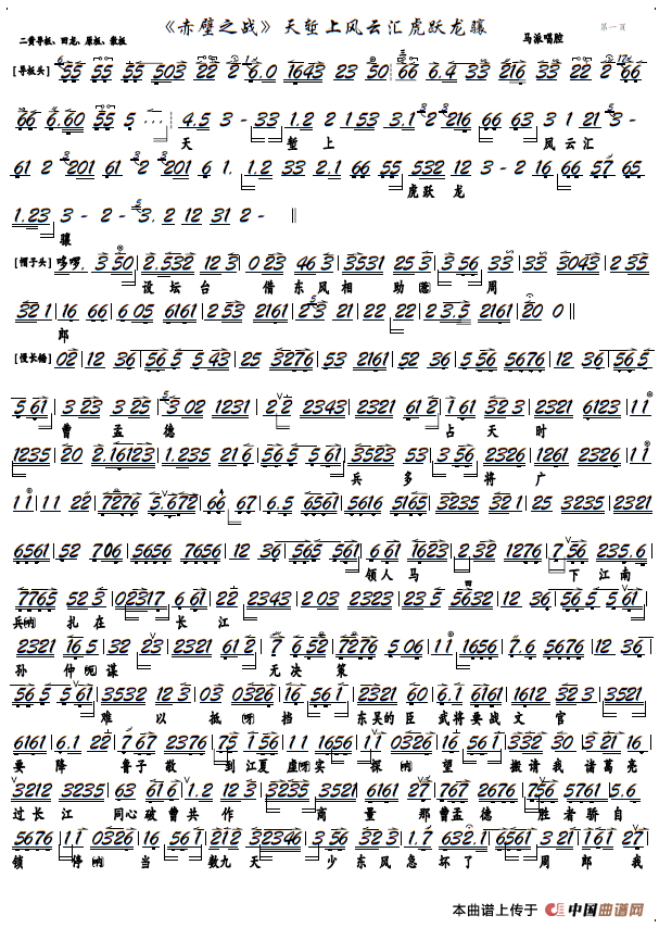 《赤壁之战》天堑上风云汇虎跃龙骧(京剧《赤壁之战》选段,京胡谱)