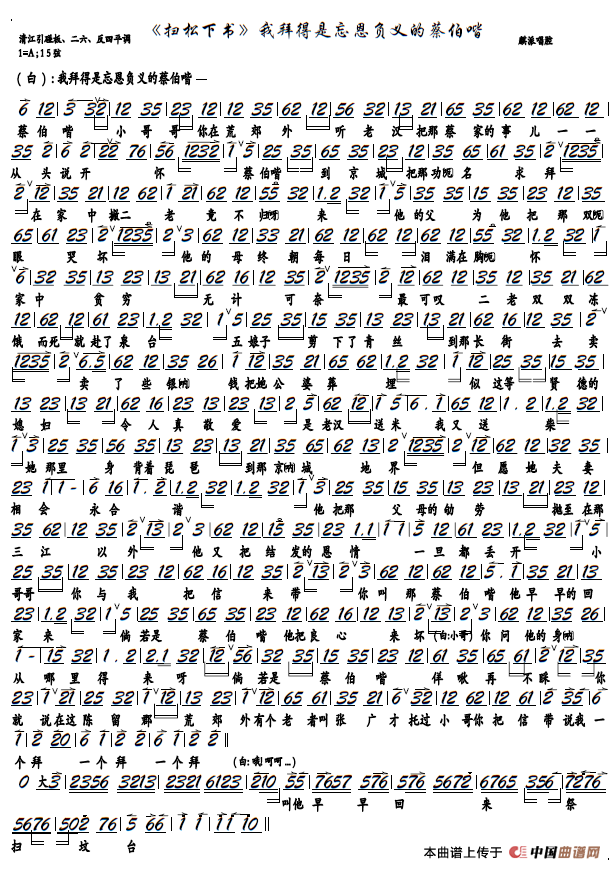 《扫松下书》我拜得是忘恩负义的蔡伯喈(京剧《扫松下书》选段,京胡谱)