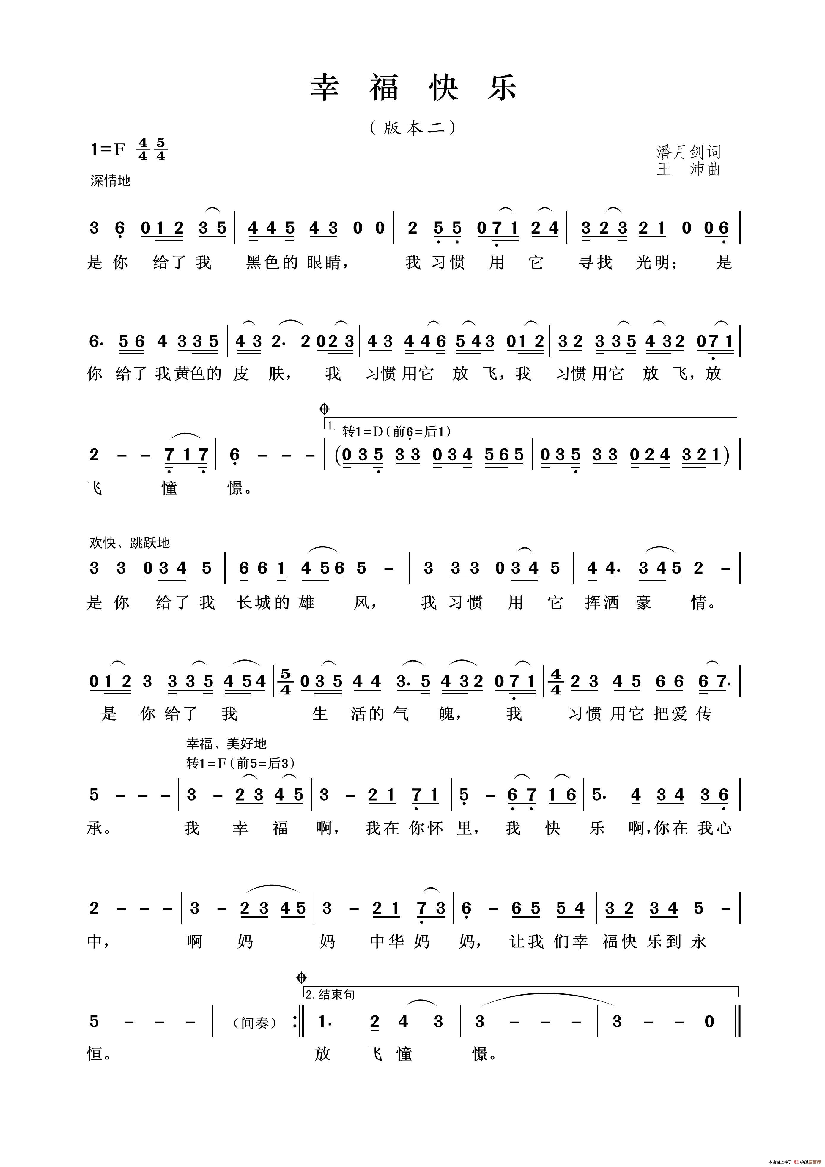 幸福快乐(版本二)(潘月剑词 王沛曲、版本二)