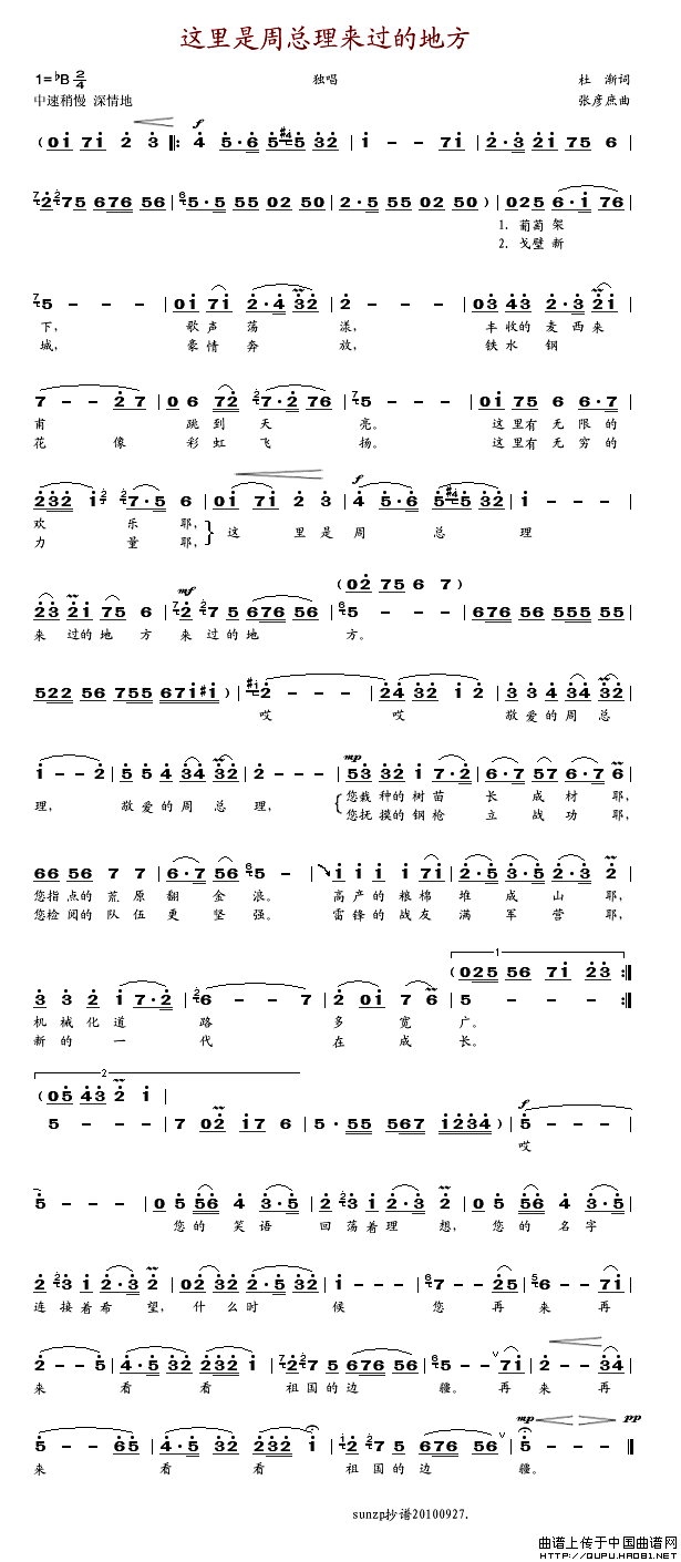 关于《这里是周总理来过的地方》曲谱的评论