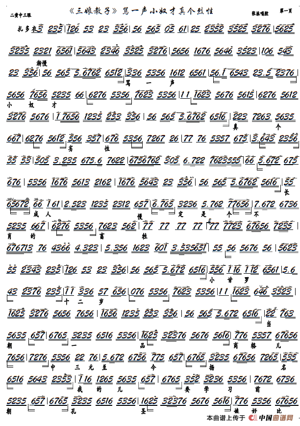 《三娘教子》骂一声小奴才真个劣性(京剧《三娘教子》选段,京胡谱)