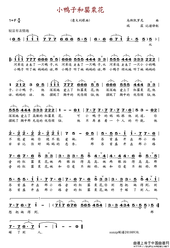 关于《小鸭子和罂粟花》曲谱的评论