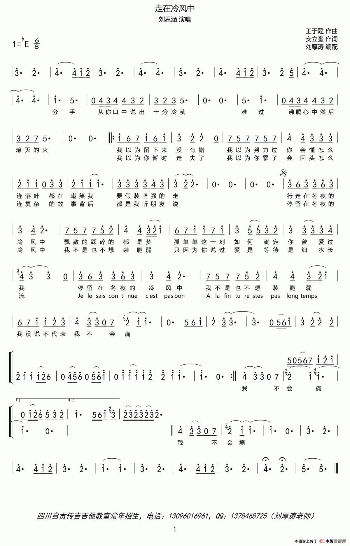 《走在冷风中》文本歌词