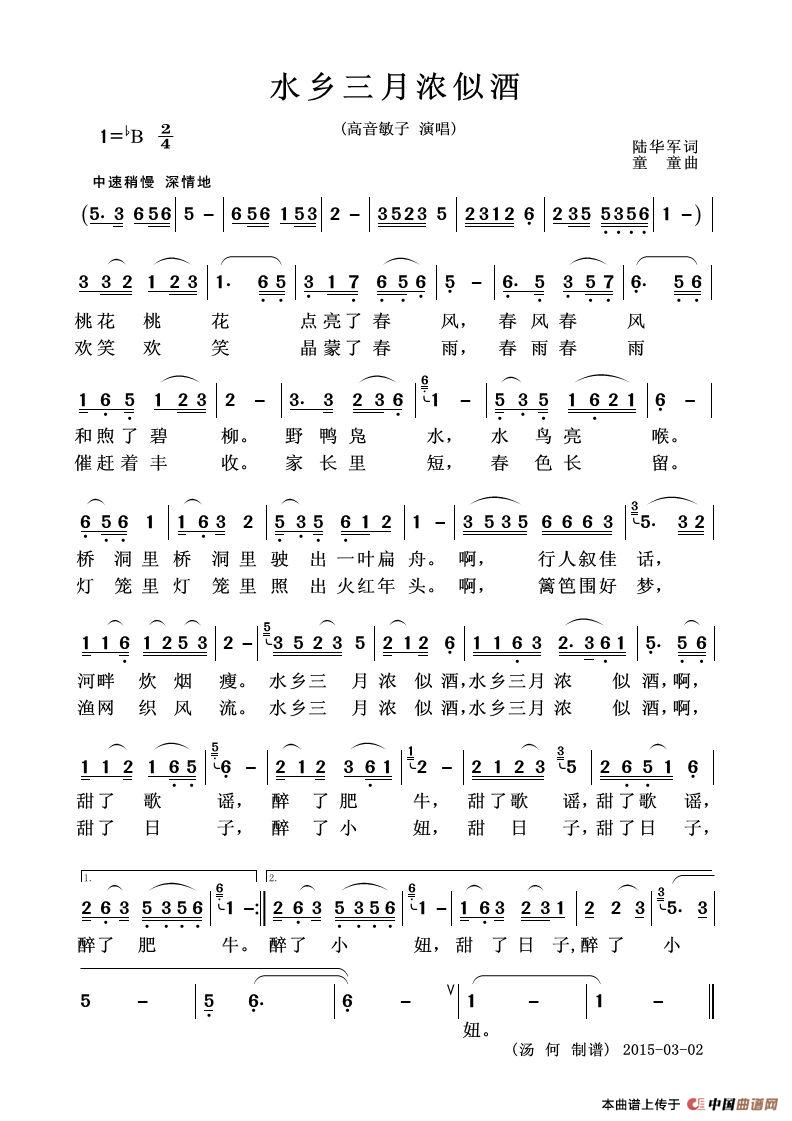 关于《水乡三月浓似酒》曲谱的评论