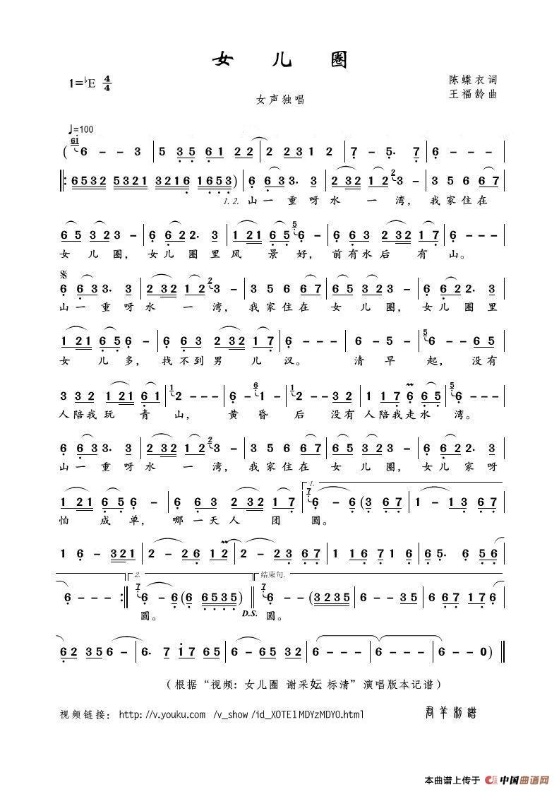 关于《女儿圈》曲谱的评论