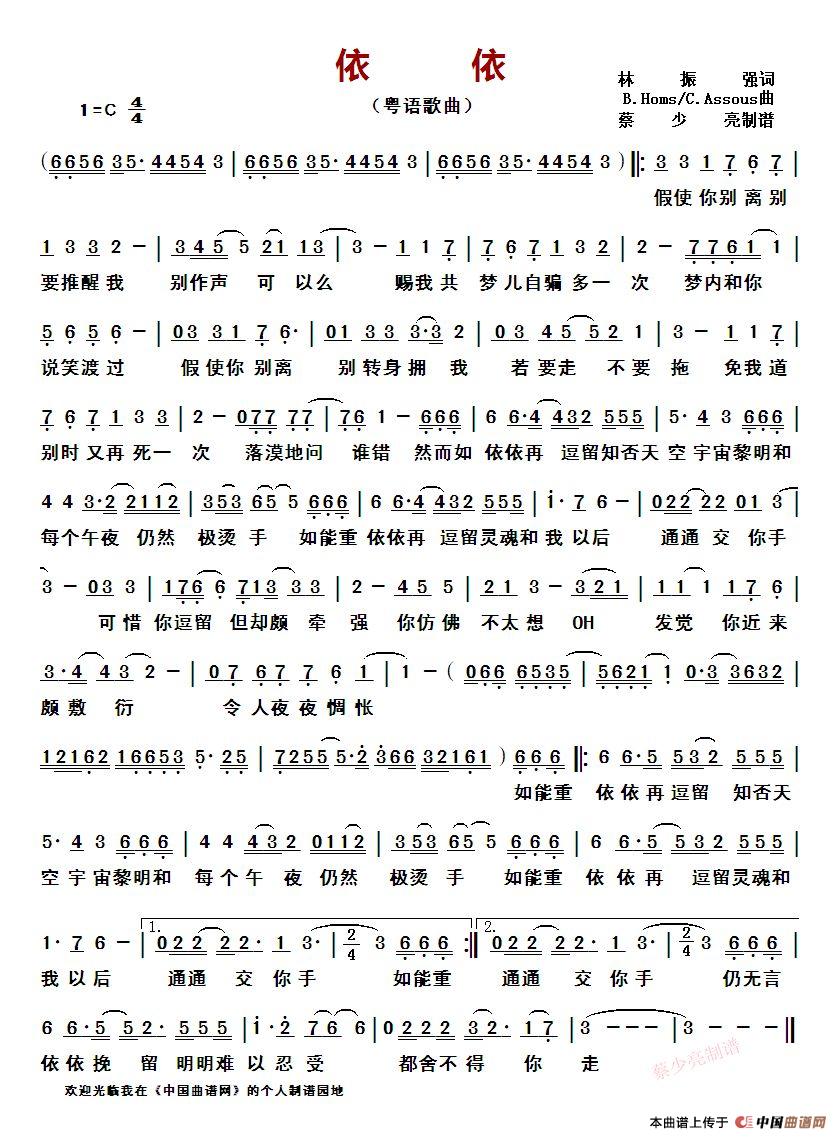 《依依》文本歌词