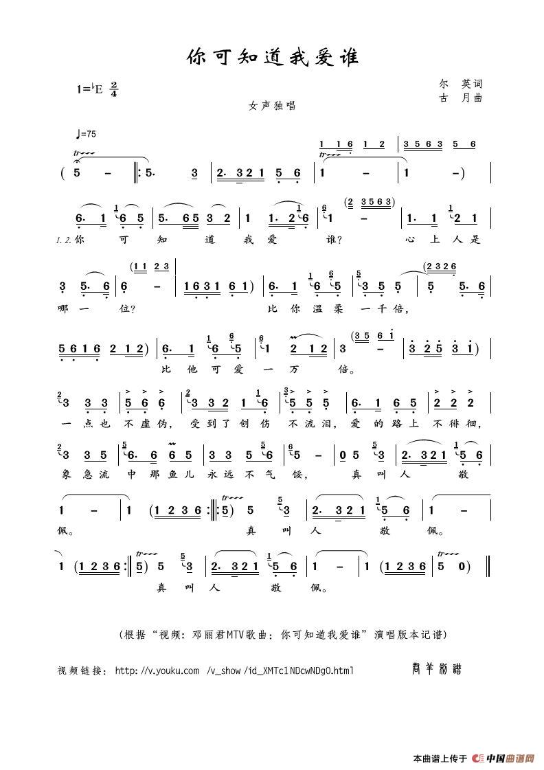 你可知道我爱谁(尔英词 古月曲)