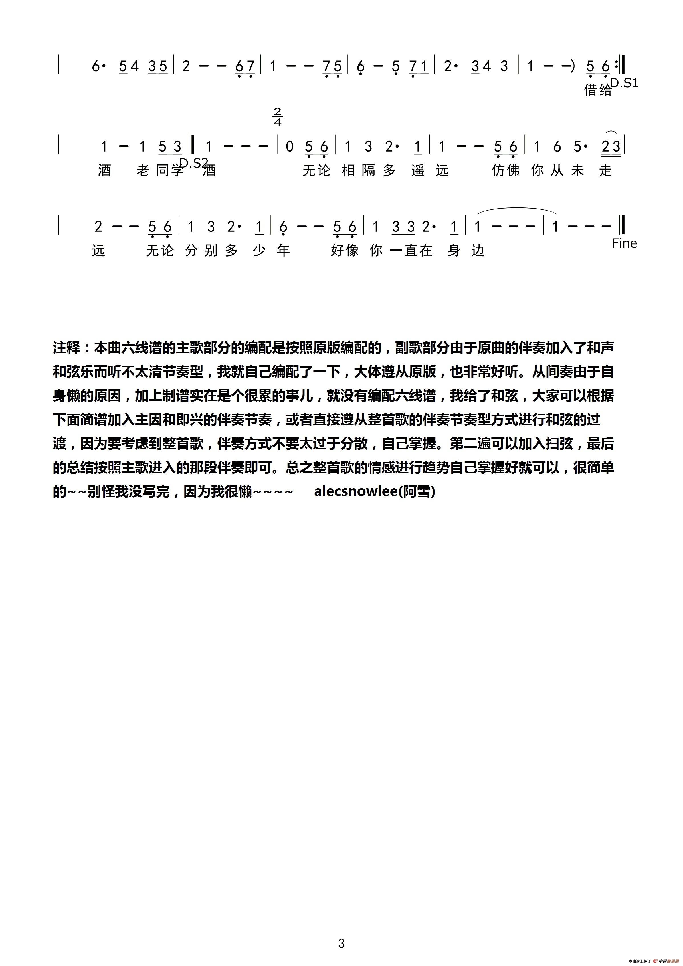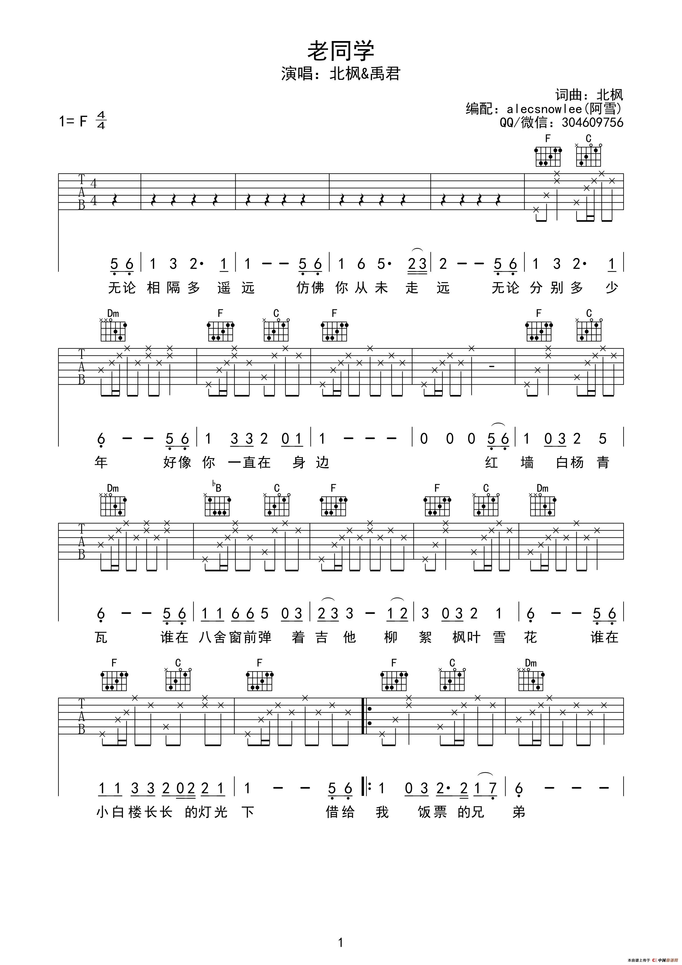 老同学(北枫词曲、原版吉他谱)