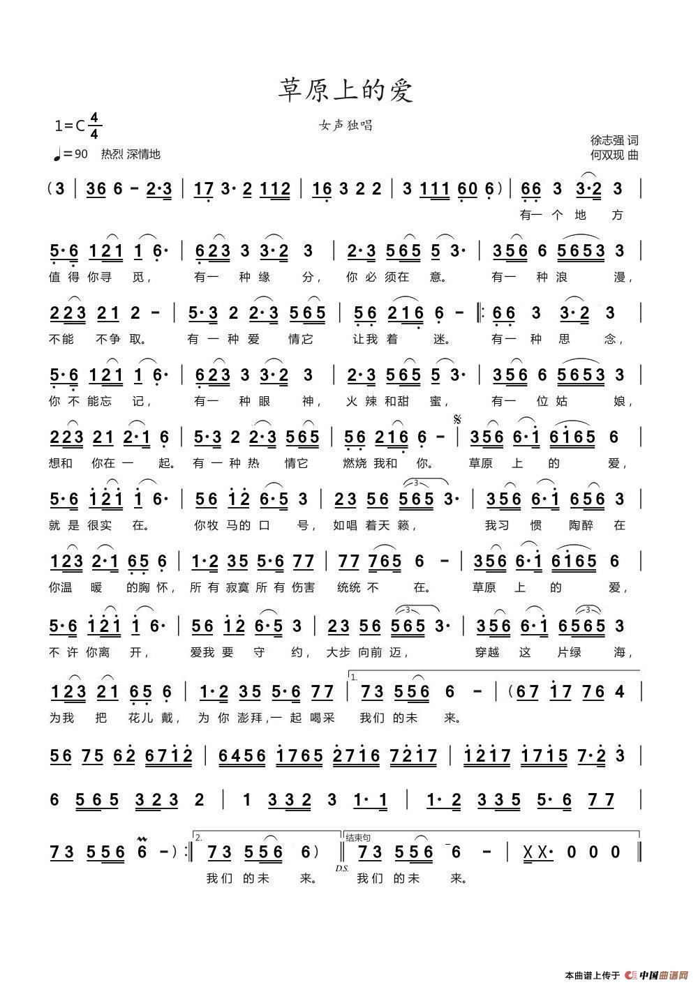 关于《草原上的爱》曲谱的评论
