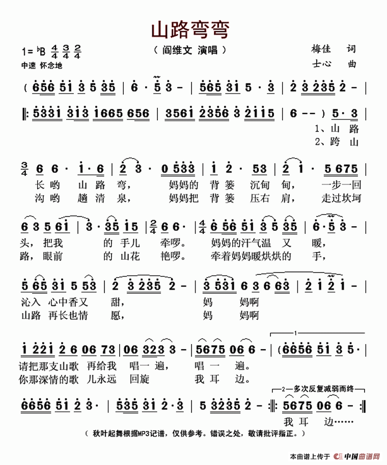 关于《山路弯弯》曲谱的评论