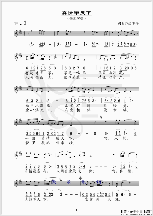 关于《真情甲天下》曲谱的评论