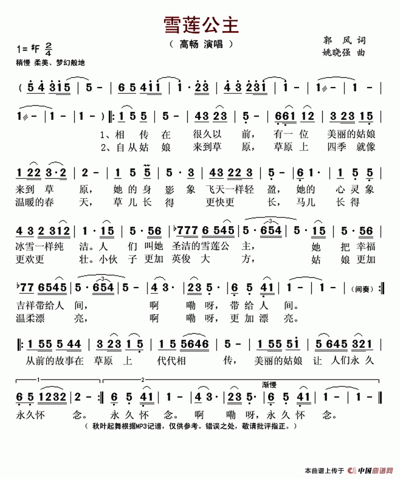 人们叫她圣洁雪莲公主,她把幸福吉祥带给人间。